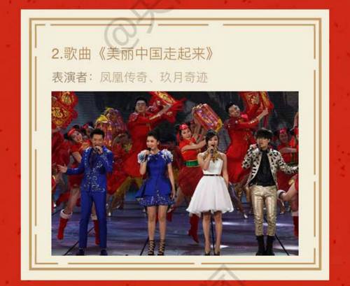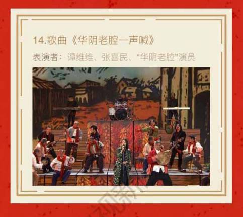 当然,春晚也少不了“毒舌女王”蔡明、“想死你们了”的冯巩带来的爆笑时间,还有老少咸宜的TFBOYS、“混搭”华阴老腔的谭维维。。。