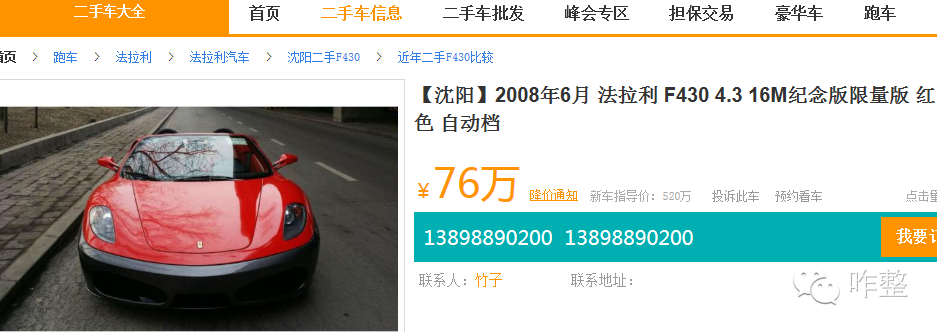 一辆2008版的二手法拉利不过只有76万而已啦。。。。。。 只要赚76万人民币就能实现梦想了!