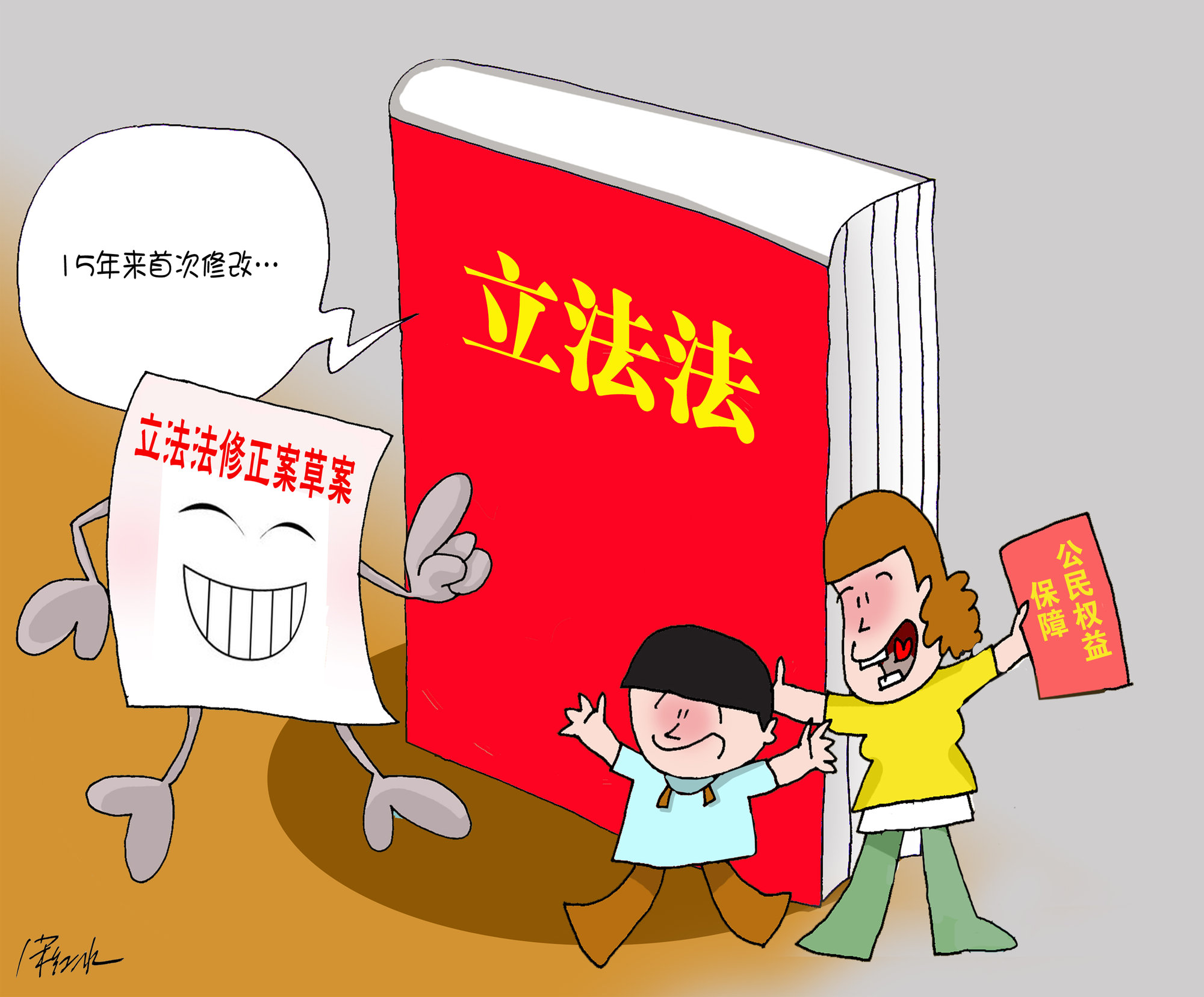 这是立法法自2000年颁布、实施15年来的首次修改。去年8月和12月,全国人大常委会对立法法修正案草案进行了两次审议,修改条款占三分之一。 按照党的十八届四中全会决定要求,为进一步明确规章的制定权限范围,推进依法行政,修正案草案规定:一是制定部门规章,没有法律或者国务院的行政法规、决定、命令依据,不得设定减损公民、法人和其他组织权利或者增加其义务的规范,不得增加本部门的权力、减少本部门的法定职责。二是制定地方政府规章,没有法律、行政法规、地方性法规依据,不得设定减损公民、法人和其他组织权利或者增加其义务的规范。