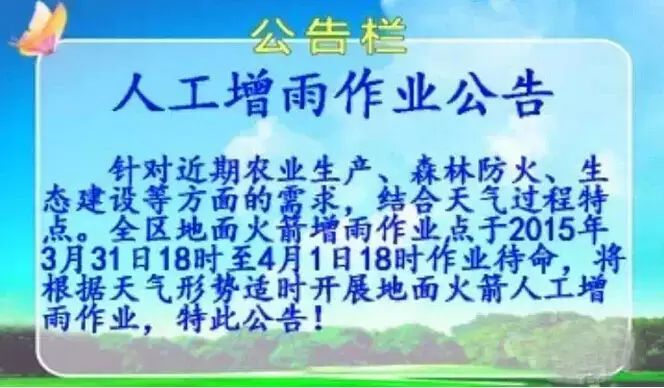 估计很多小伙伴对这场突如其来的雨感到很奇怪吧,其实这场雨它来得是有预谋的哦。 3月31日,宁夏气象公布针:“对近期农业生产、森林防火、生态建设等方面的需求,结合天气过程特点。全区地面火箭增雨作业点于2015年3月31日18时至4月1日18时作业待命,将根据天气形势适时开展地面火箭人工增雨作业,特此公告!”