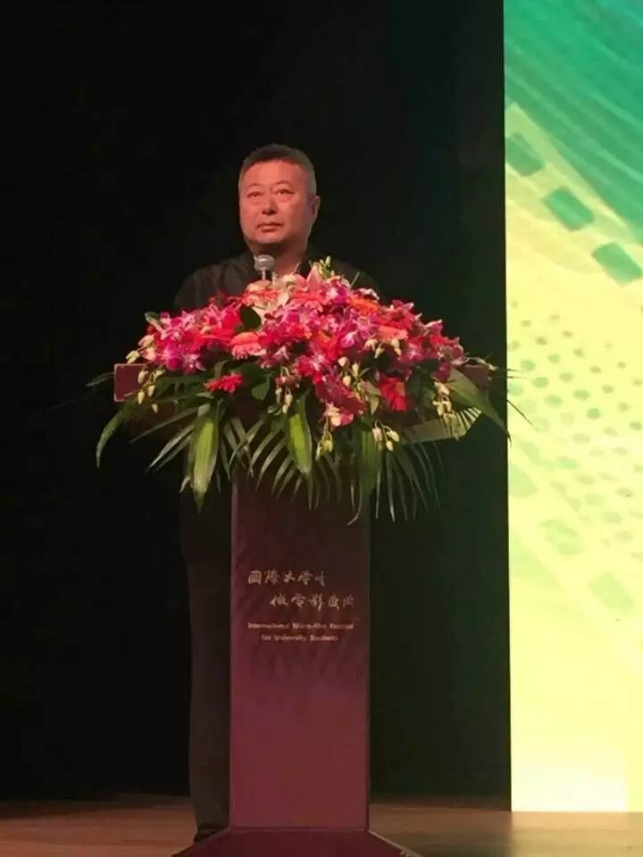 韩国清州大学电影学院院长金敬植致辞。他说,电影表达一个国家的精神。
