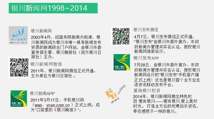作为银川日报社下属的国有独资公司,宁夏银网传媒有限公司成立于2013年8月,具体负责银川新闻网网站建设、市场营运,是目前宁夏最大的互联网综合服务提供商之一。公司成立两年多以来,银网传媒一直秉承“共享、开放、合作、创造”的经营理念,始终处于稳健发展的状态。